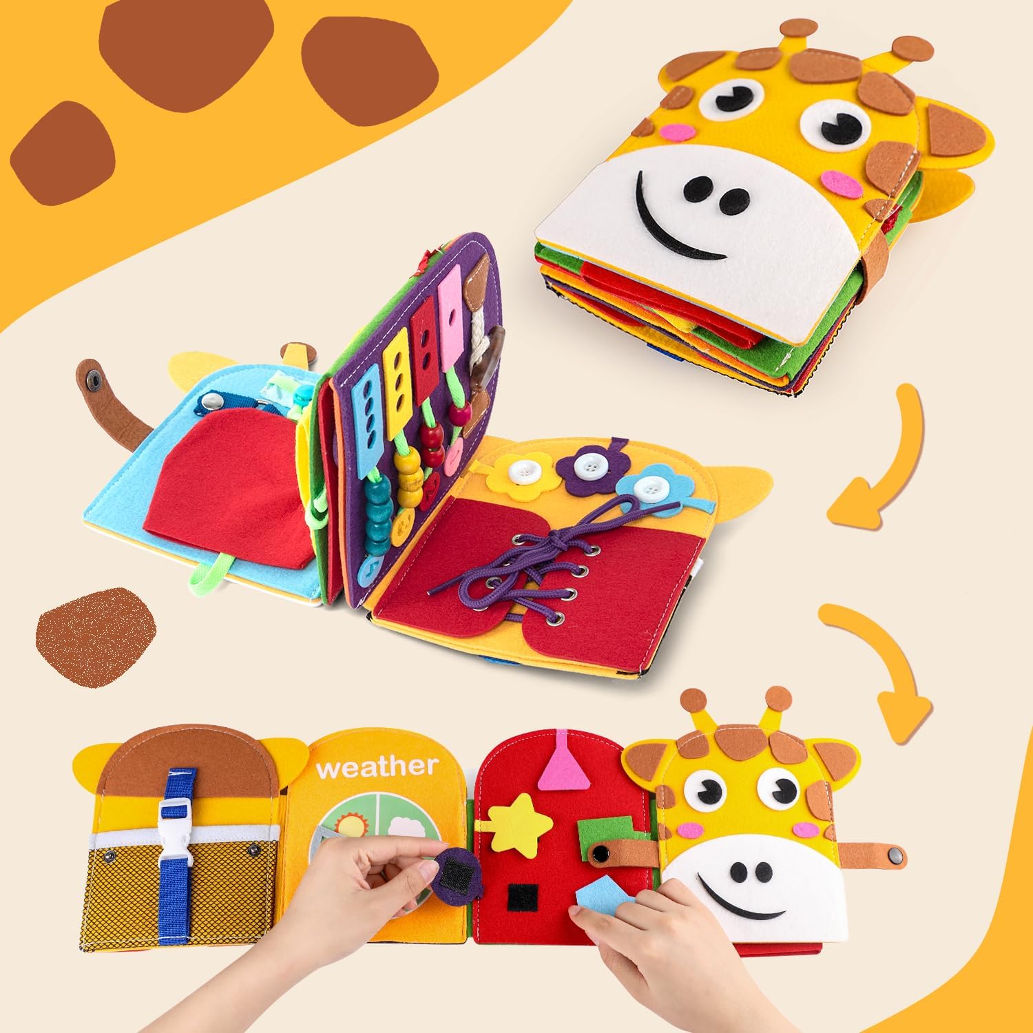 ✓ Développe la motricité fine : Fermetures éclair, boutons, rabats – pour s’exercer aux gestes du quotidien